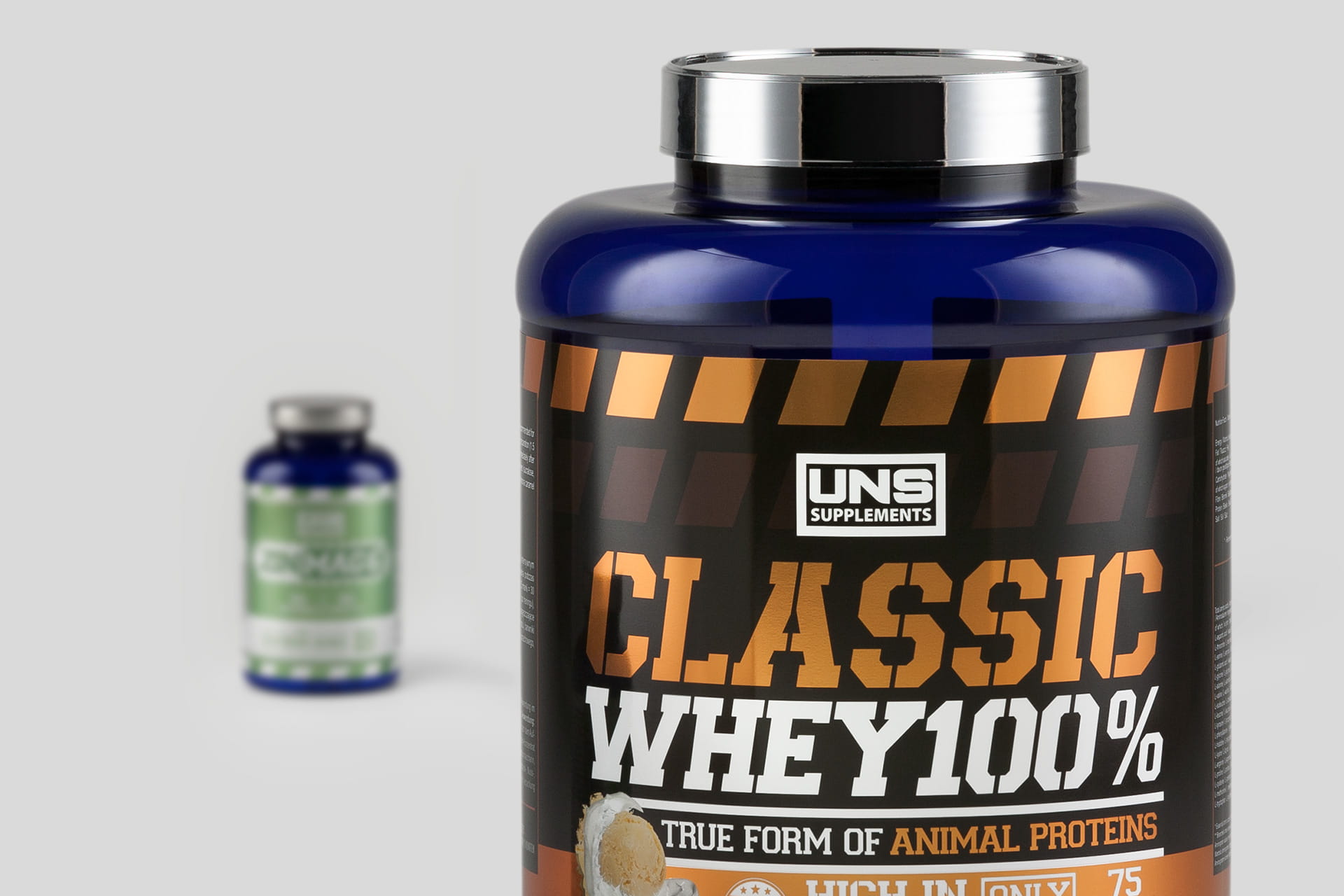 Przedstawiona etykieta na odżywki białkowe z pewnością wyróżnia się na sklepowej półce.